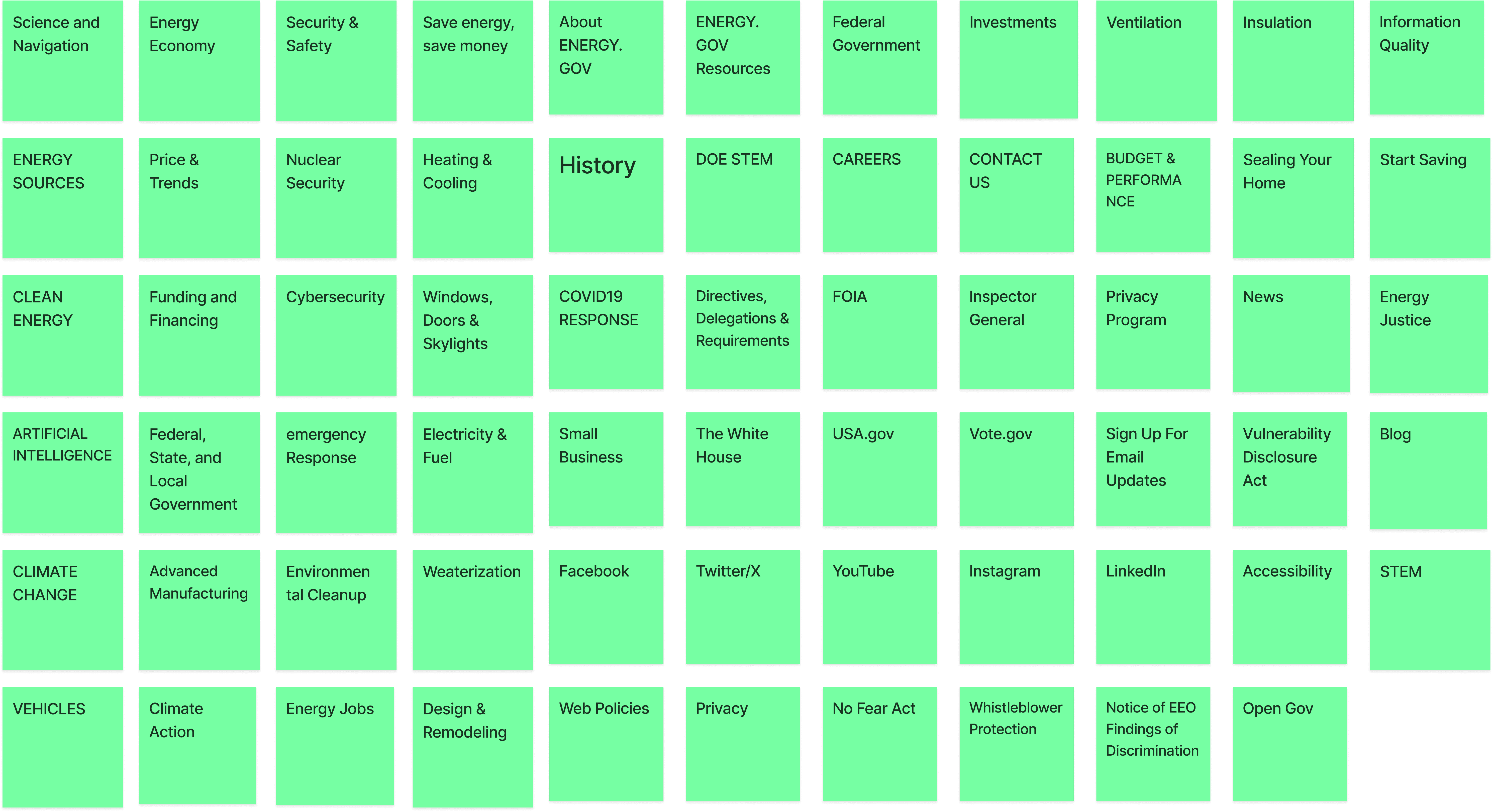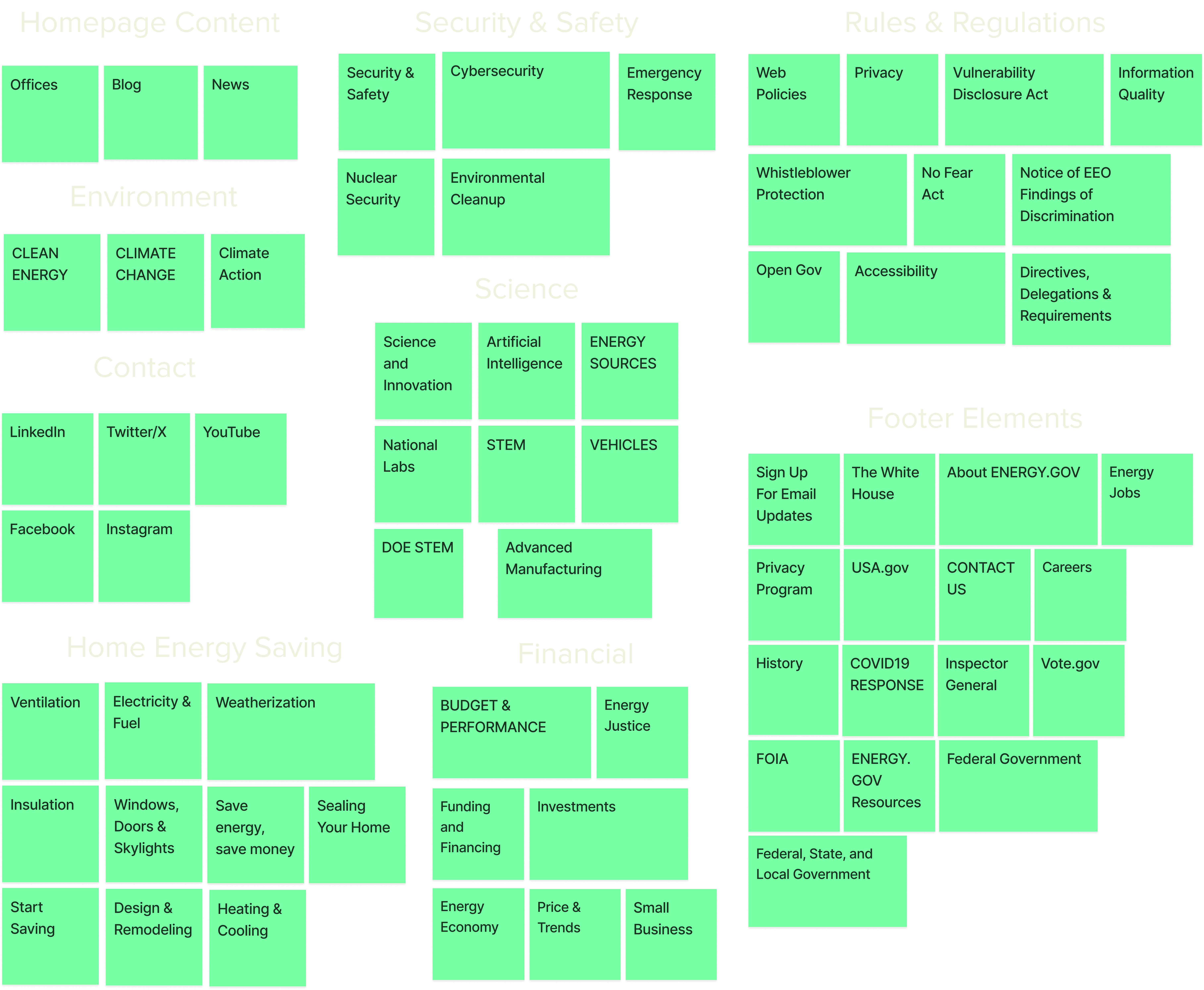 The Energy.gov sitemap is often confusing due to its overwhelming number of subpages and lack of clear information hierarchy. Important content can be buried deep within sections, making it hard for users to find what they need quickly. The site also leads to frequent dead ends, highlighting a need for better information prioritization and streamlined navigation.